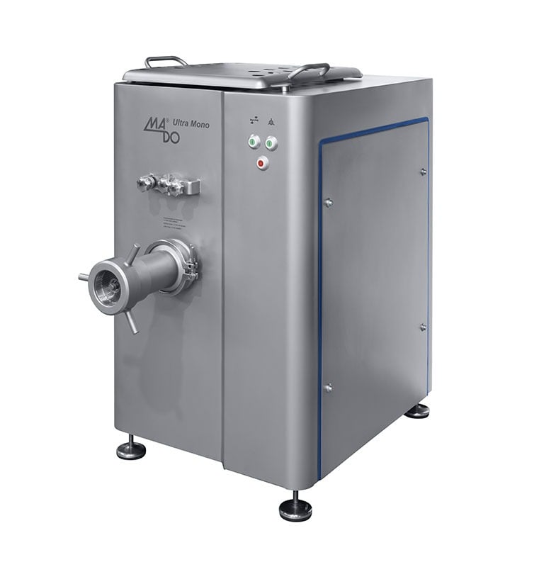 The MEW 722 processes big pieces (e.g. complete pork shoulders) or chilled material without any problems.