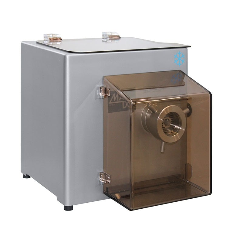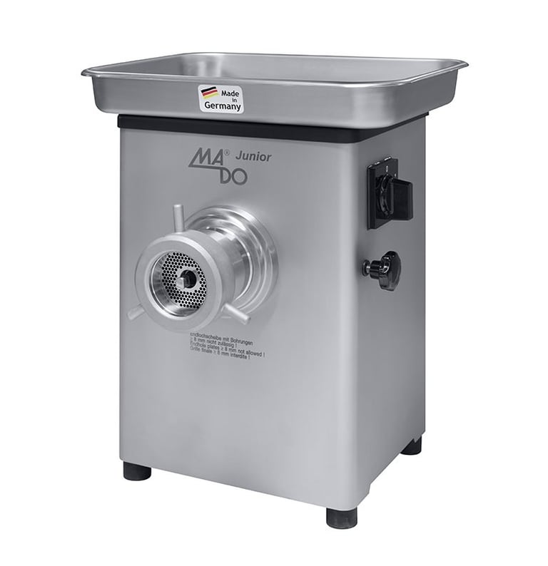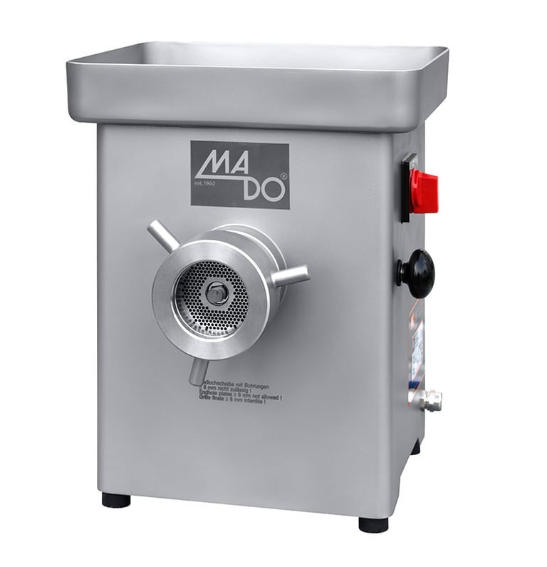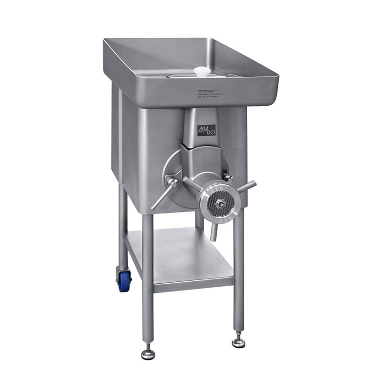 The powerful MADO manual mincers are the ideal partners – from table top to floor-standing device constructed for the highest demands. Different variations are available. Latest production technology and high quality raw materials guarantee optimal work results in every phase. Due to the special designed intake of the processing worm, the stuffer can be largely dispensed with in all MADO grinders. With the MADO manual mincers MEW 718/719, even slightly frozen material can be processed easily. The integrated cooling of the MADO manual mincers MEW 714 – 716 ensures that all surfaces that come into contact with the meat are kept at a constantly low temperature.
