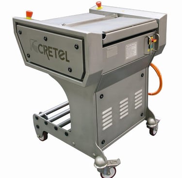 Precision removal of skin from most species of fish, including Nile perch, skate wings, monkfish, freshwater catfish, squid and cuttlefish, dogfish, shark, fresh and smoked salmon, tilapia, flounder, plaice and other flatfish, whiting, cod, haddock, and other whitefish..